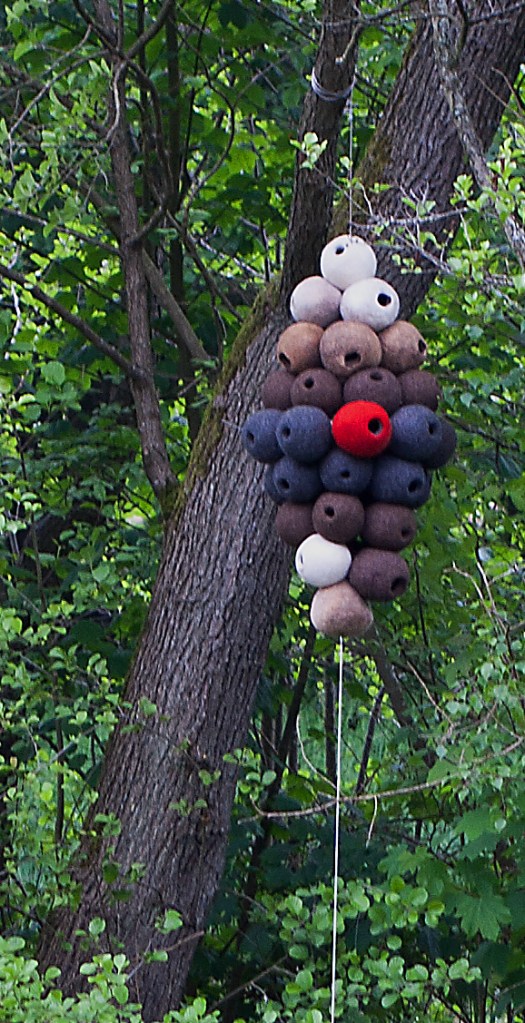 Vogelhochhaus: 40 festgefilzte Kugeln sind einem Bienenstock änlich zusammengefügt. Im Schloßpark Pansewitz auf der Insel Rügen voraussichtlich noch bis Anfang August ausgestellt.